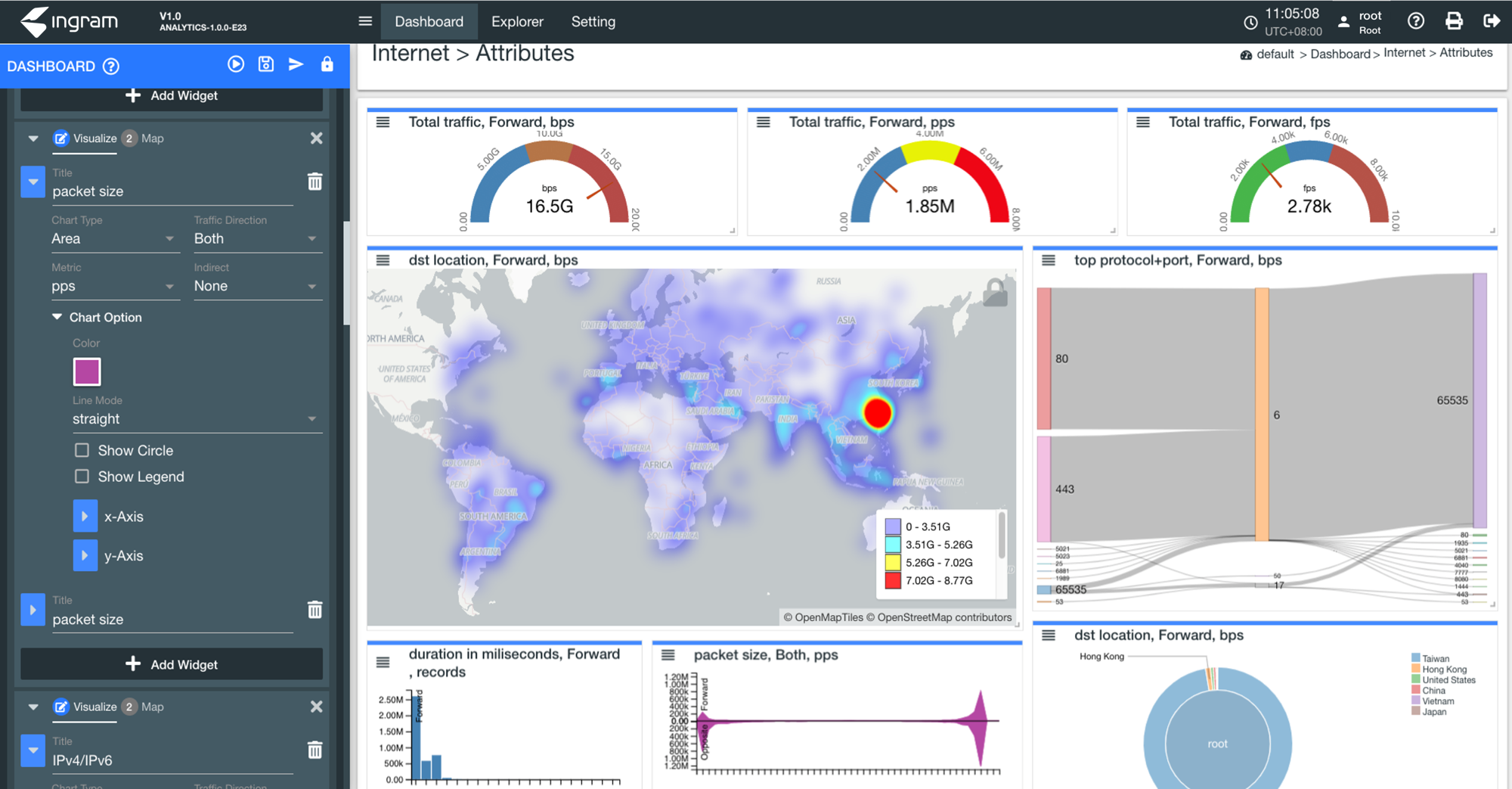 可储存巨量的流量注释数据――包含流量纪录、BGP 路由、SNMP 及网络模型物件。